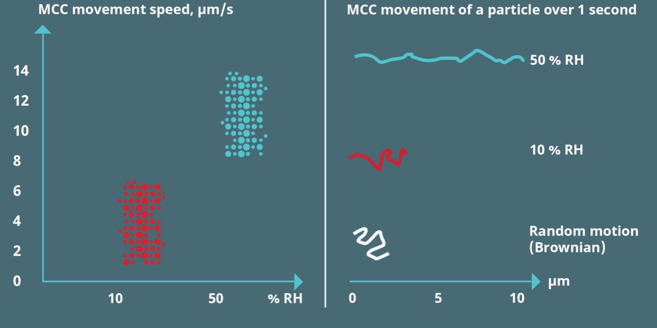 - Eine niedrige relative Luftfeuchte (10 - 20%) wirkte sich negativ auf die mukoziliäre Clearance (MCC) aus und beeinflusste sowohl die Geschwindigkeit des MCC als auch seine Richtung